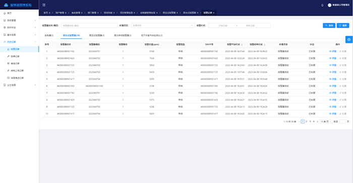 傳感器物聯(lián)網(wǎng)管理系統(tǒng)集成了復(fù)合式報警器、固定式報警器、激光甲烷報警器、地下井室氣體檢測儀等多種氣體檢測傳感器的大平臺報警信息監(jiān)控統(tǒng)計系統(tǒng)。靈活多變的權(quán)限管理功能,如用戶管理、角色管理、部門管理等,權(quán)限功能可配置;簡單易用的項目管理功能,可根據(jù)實際區(qū)域,負責(zé)人實際業(yè)務(wù)場景創(chuàng)建多個項目,實現(xiàn)項目分層,分級管理;豐富的報警提示功能,報警實時推送平臺,具有文字、聲音提醒,短信提醒,手機app提醒等多種方式;完善的設(shè)備管理功能,可添加多款報警器設(shè)備進行統(tǒng)一管理,可隨時隨地登錄網(wǎng)頁,手機app查看設(shè)備狀態(tài)信息,報警狀況,遠程控制等功能;支持一鍵掃碼添加設(shè)備,批量導(dǎo)入等快捷方式添加設(shè)備;具有傳感器異常及報警數(shù)據(jù)記錄,通過列表,圖標(biāo),曲線的方式實現(xiàn)記錄、統(tǒng)計、分析等功能。