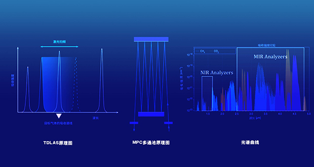 基于MPC長光程內置氣室、外置氣室、光聲氣池、中紅外激光器和多波長高精度痕量氣體分析技術組合,泵吸或自然擴散式采樣工作方式,適用于煤礦、油氣、電力等多種關鍵場合進行連續在線式多組分氣體狀態分析。